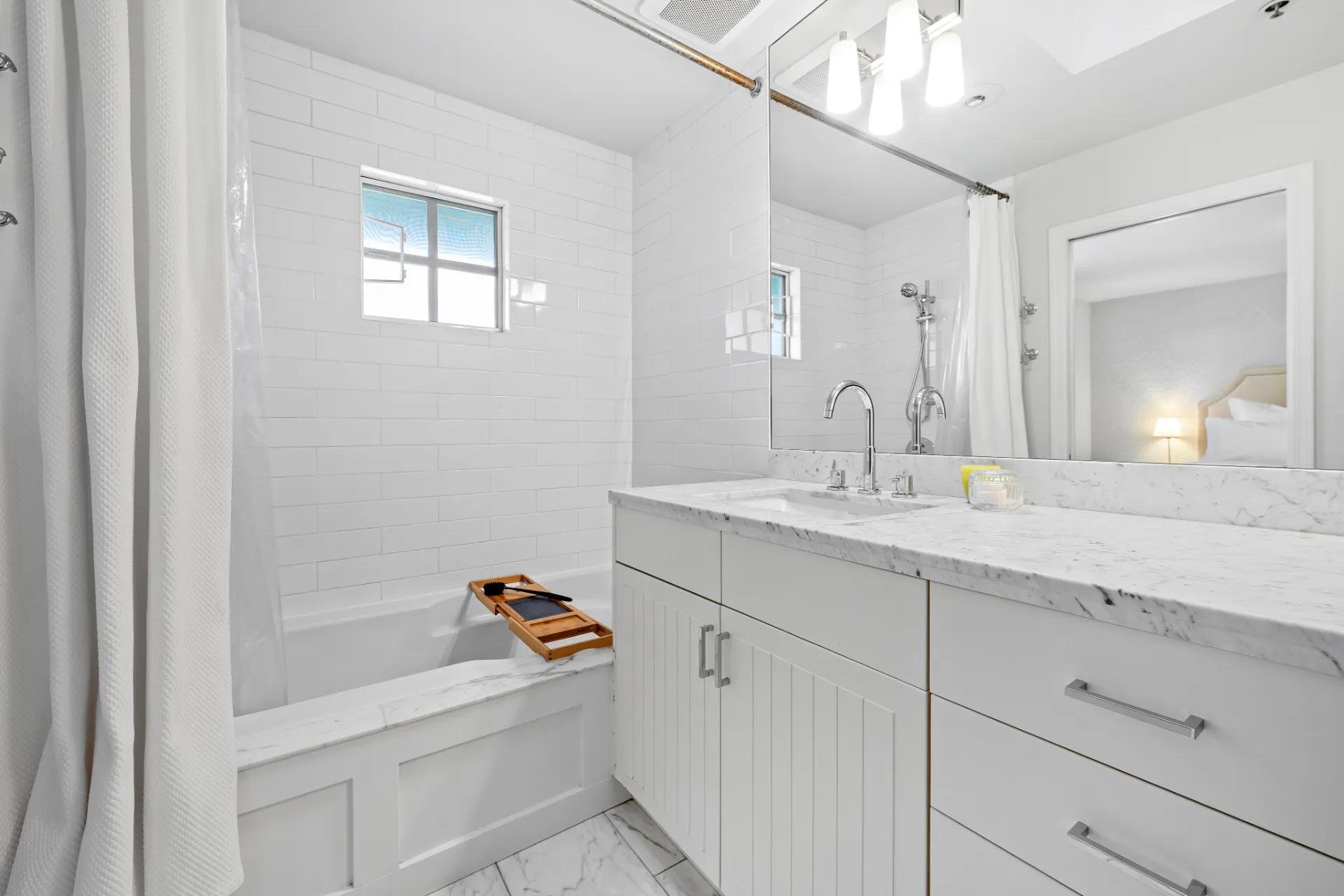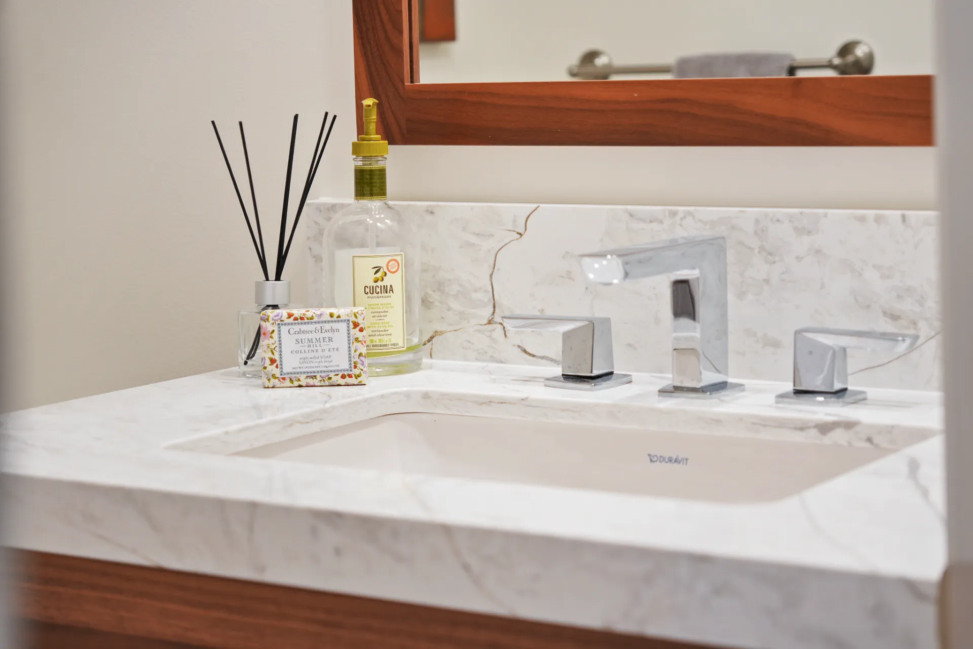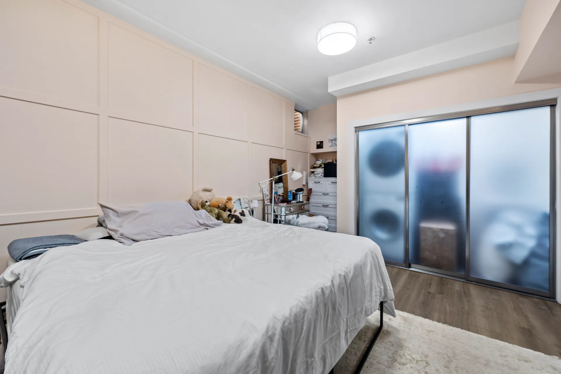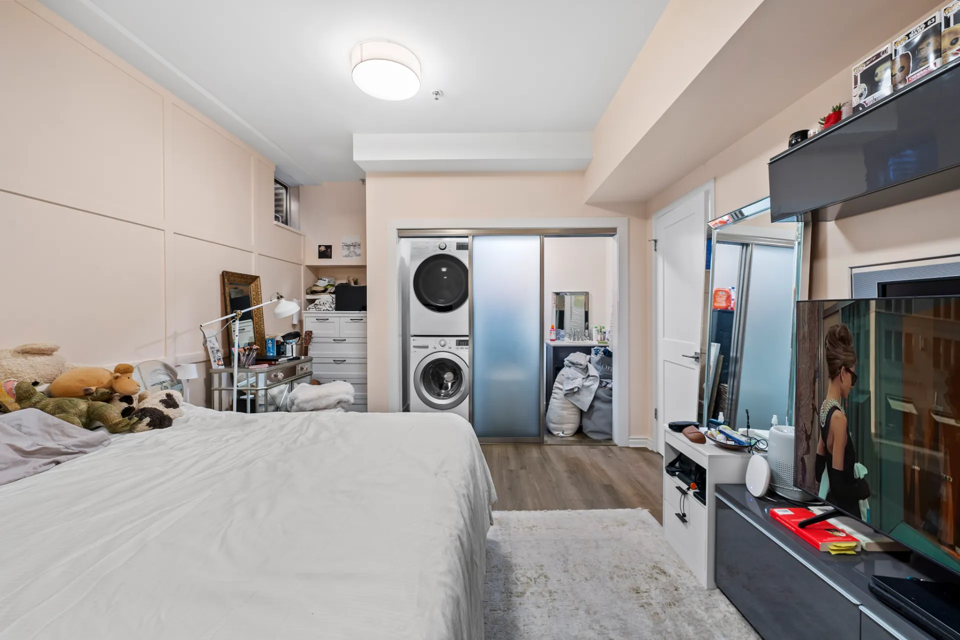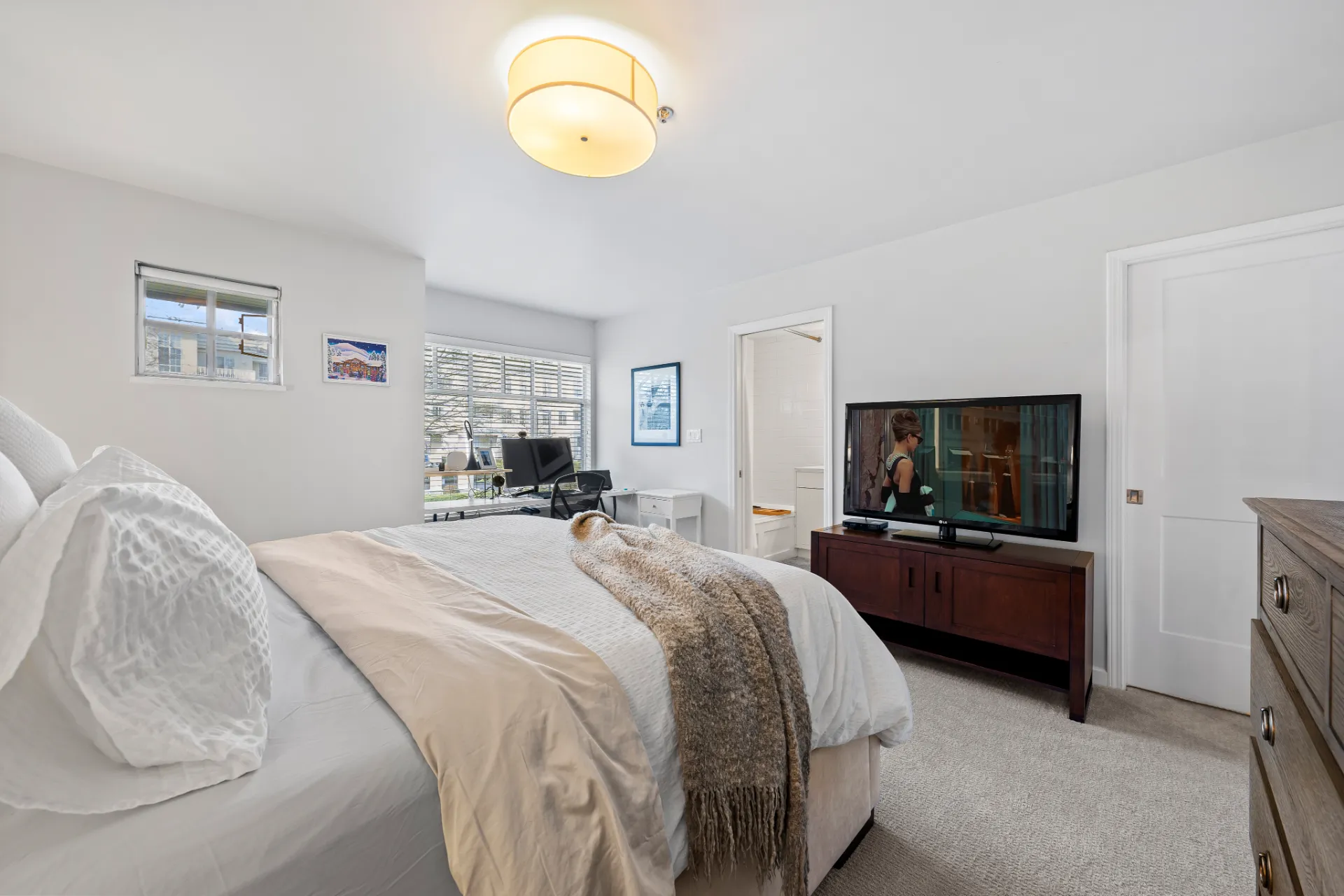 The updated kitchen is a chef’s dream, complete with stainless steel appliances, including a new fridge and gas range, soft-close walnut cabinetry, and 2” mitered quartz countertops. Upstairs, two generous bedrooms each enjoy their own fully remodelled ensuite, featuring radiant in-floor heating, frameless showers, Brizo faucets, and Duravit sinks and toilets. The lower level offers a versatile third bedroom or family room, perfect for a media space, home office, or guest suite.