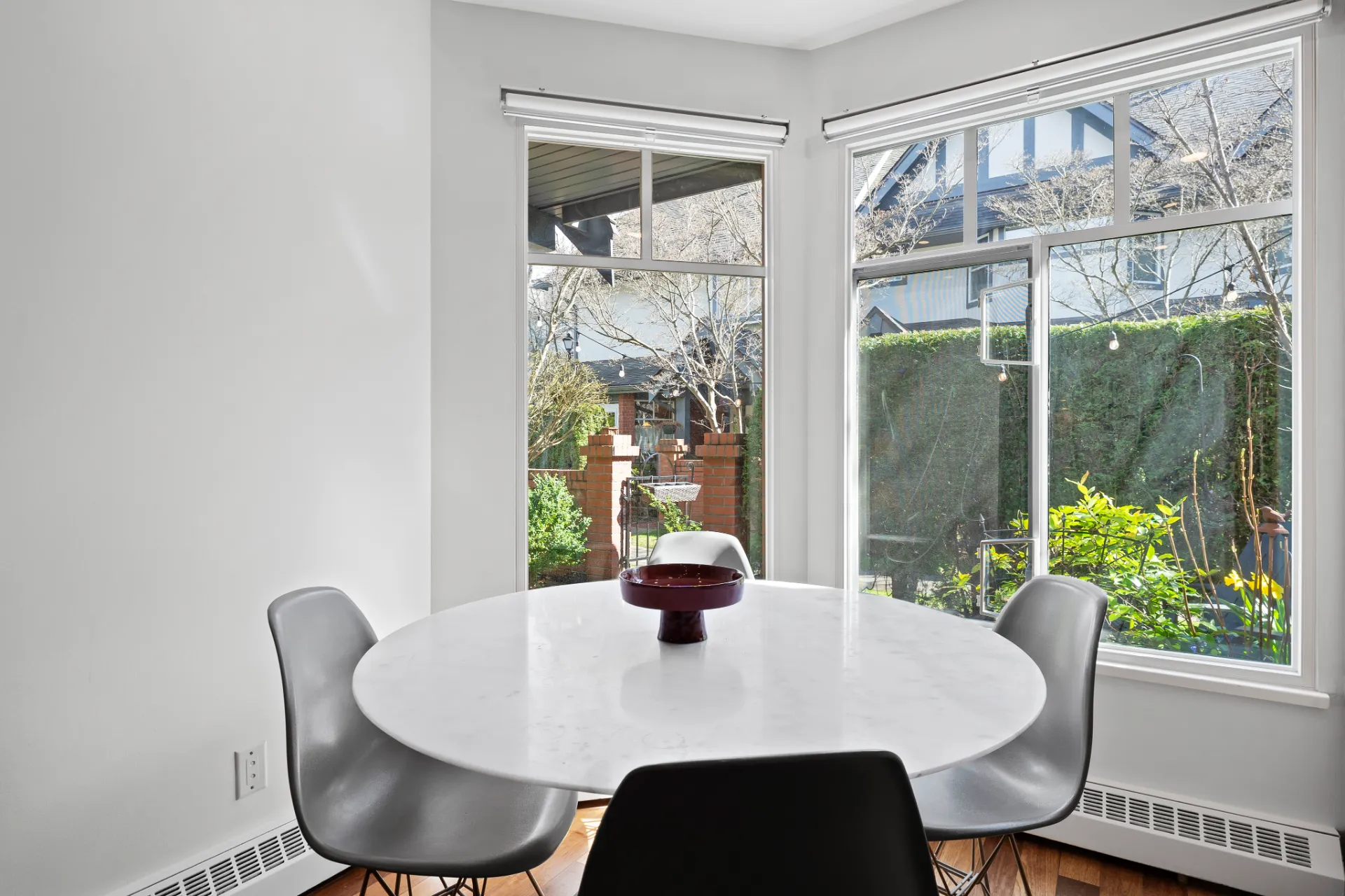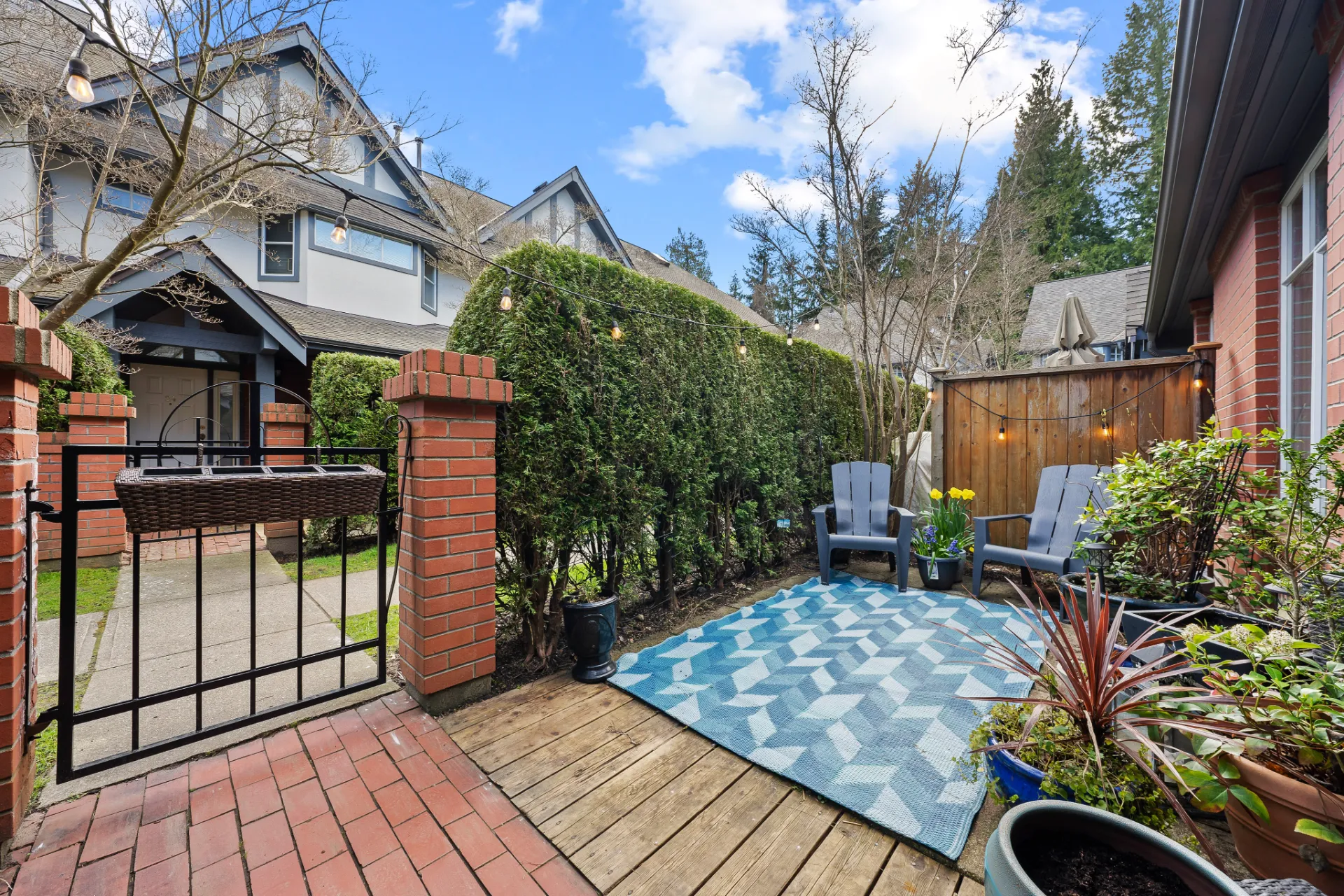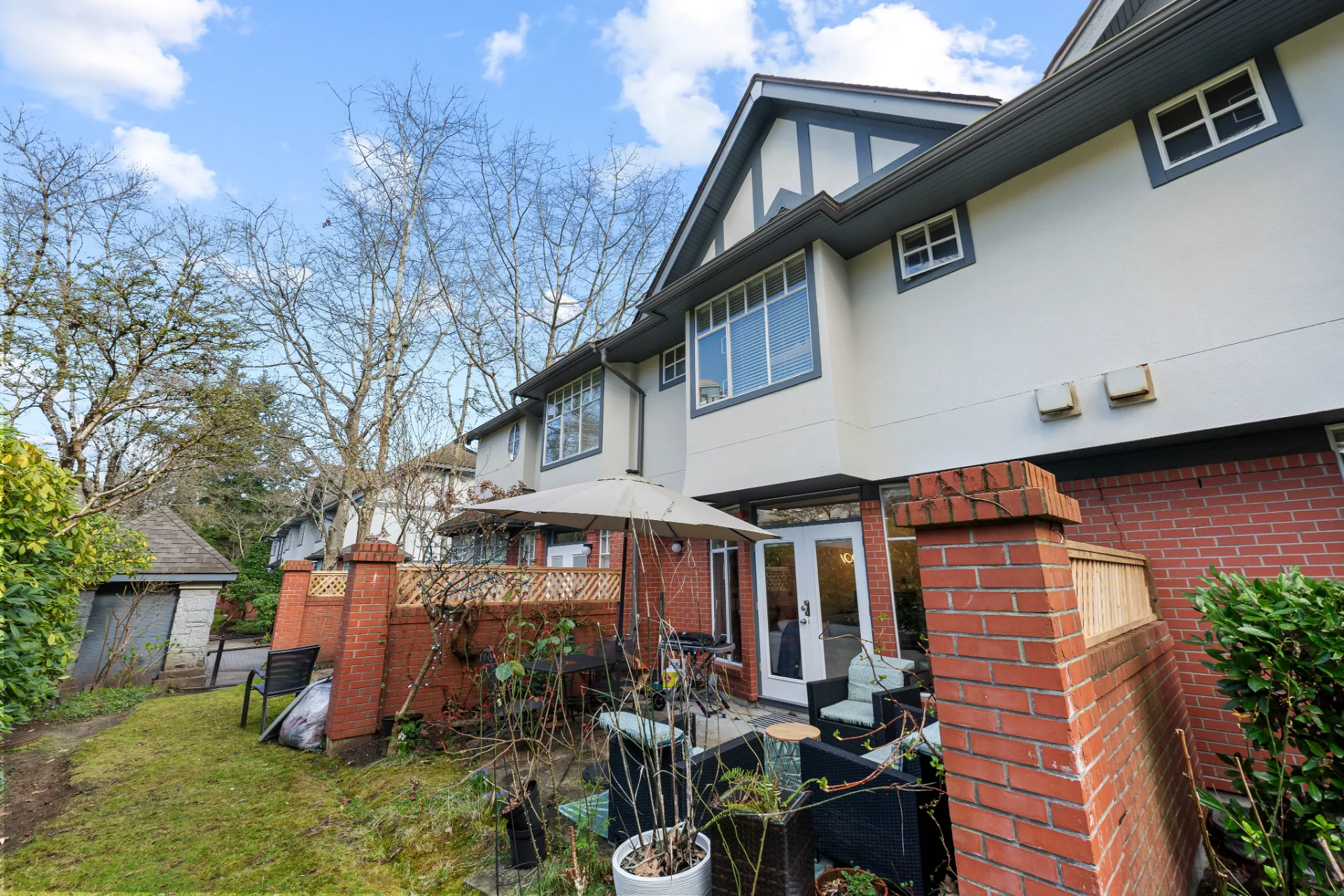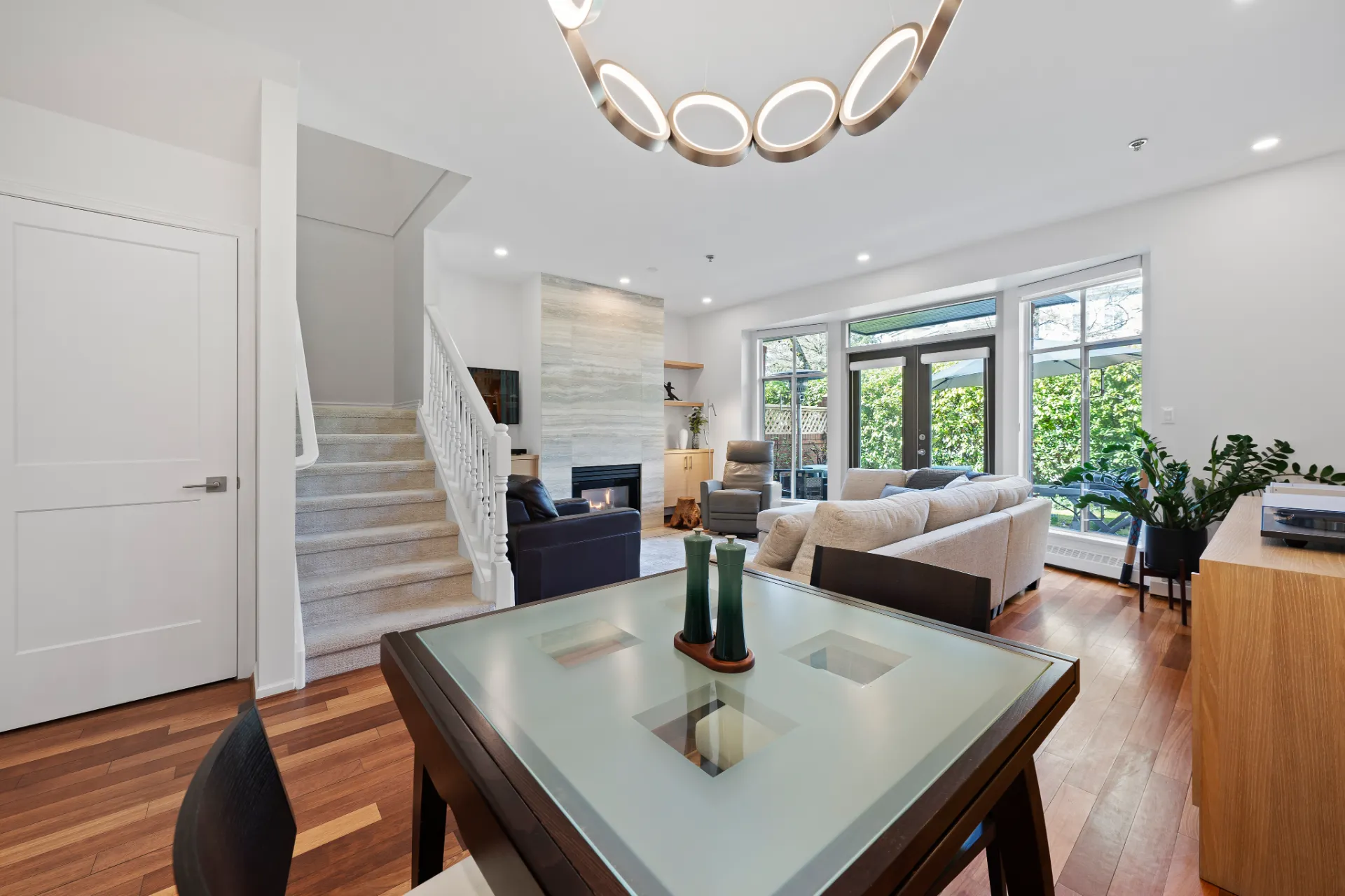 Welcome to this beautifully renovated 3-level townhouse at Thames Court, one of UBC’s most sought-after communities. Offering approximately 1,700 sq. ft. of thoughtfully designed living space, this home combines modern updates with timeless charm. The main floor features rich hardwood flooring, newly painted walls, and a striking gas fireplace with floor-to-ceiling honed marble facing. Recessed LED lighting throughout the main floor adds a contemporary touch, creating a bright, welcoming space perfect for everyday living and entertaining. French doors lead to a private rear patio, while the sunny south-facing front patio provides a tranquil outdoor retreat.